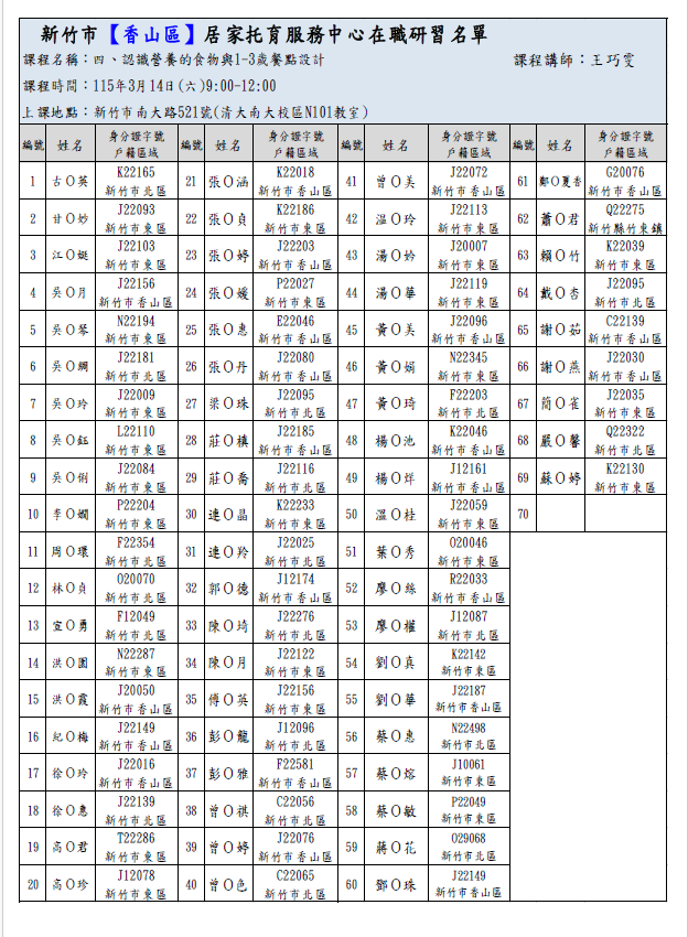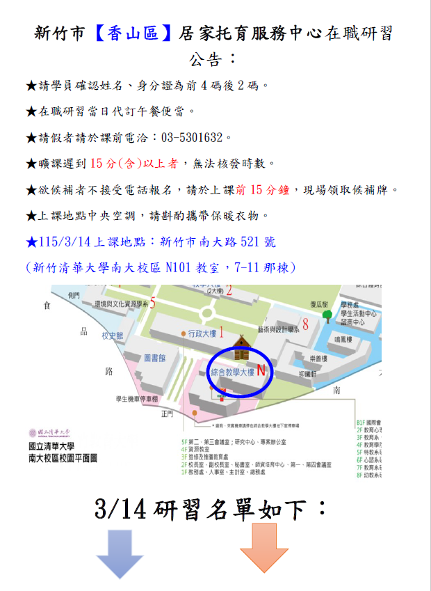 115年3月14日在職研習報名名單公布...