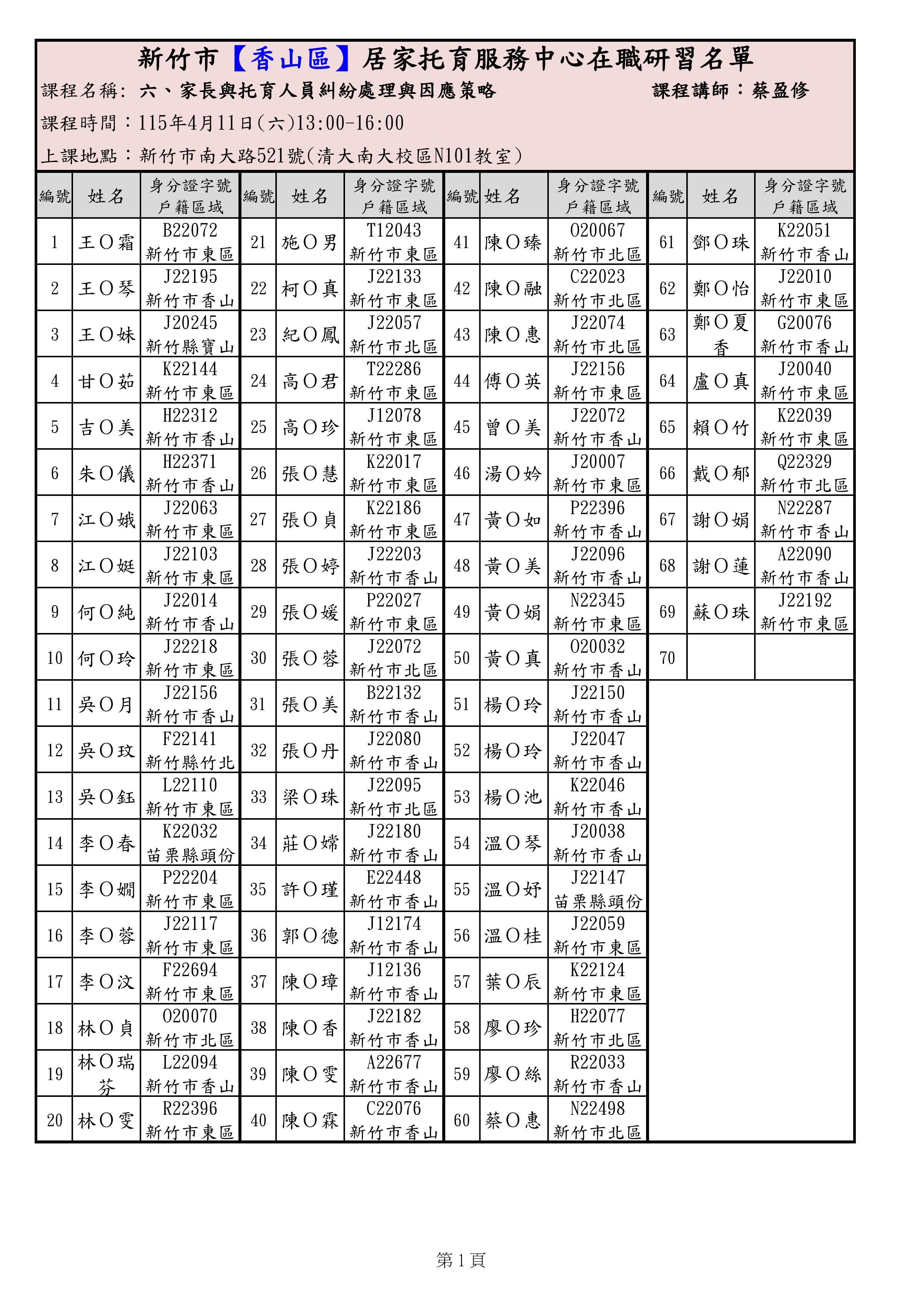指導單位:衛生福利部社會及家庭署 主辦單位:新竹市政府社會處 承辦單位:社團法人新竹市教保人員協會